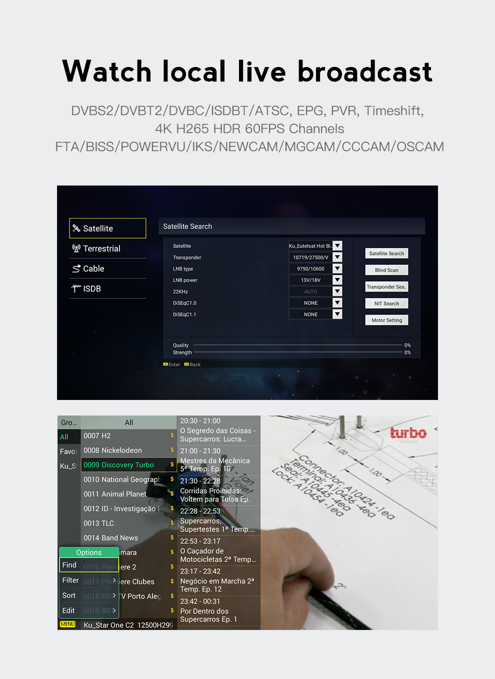 | BISS, PowerVU, CCCAM, NEWCAM, GSCAM, MGCAM, OSCAM | ||